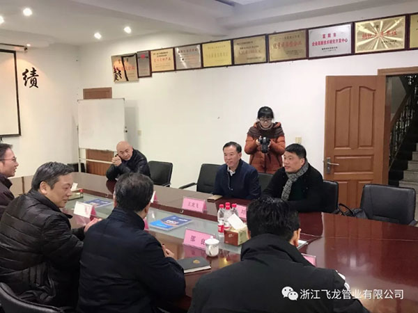 2019年1月2日下午,杭州市政協(xié)副主席胡偉在富陽區(qū)政協(xié)副主席邵良等陪同下,來到浙江飛龍管業(yè)有限公司調(diào)研。